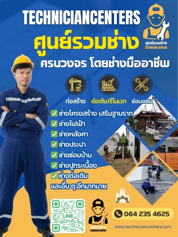 TechnicianCenters.com คือเว็บไซต์ศูนย์รวมช่างมืออาชีพจากทั่วประเทศ ไม่ว่าคุณจะมองหา ช่างต่อเติมบ้าน ช่างดีดบ้าน ซ่อมบ้านทรุด ช่างไฟฟ้า ช่างประปา ช่างแอร์ ช่างซ่อมบ้าน ช่างรีโนเวท หรือช่างติดตั้งเฟอร์นิเจอร์ — เรารวมไว้ให้คุณแล้วที่นี่